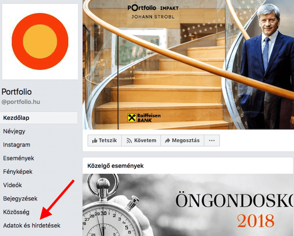 Ha megtaláltad a Facebook oldalt, keresd meg az “Adatok és hirdetések” lehetőséget.